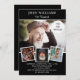 Crie sua própria colagem de fotos exclusiva. Use quatro, quatro das suas fotos favoritas. Personalize e adicione um nome e detalhes da parte. Fundo preto, texto branco.