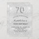 Um convite moderno, na moda e glamouroso para uma festa de aniversário 70. Um fundo com aparência de prata falsa, decorado com poeira brilhante. Personalize e adicione o seu nome e detalhes da festa. O número 70 é escrito com uma fonte de estilo de balão, script.