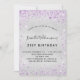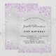 Para um aniversário elegante de 21 ruas (ou qualquer idade). Um fundo metálico falso prateado. Decorado com pó de brilho púrpura. Personalize e adicione um nome, idade e detalhes da festa. O nome é escrito com um script de estilo manuscrito