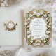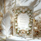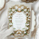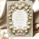 Este elegante convite para o casamento contém lírios brancos atordoantes interligados com um verde delicado, enquadrado por detalhes intrincados de ouro falso que exudem sofisticação e graça. A design da frente mostra uma fronteira real inspirada pelo barroco com arranjos florais de ornamentado, enquanto a parte de trás apresenta um monograma minimalista de formato ouro, acrescentando um toque refinado à design geral. Contra um fundo de creme suave, este convite combina elegância do eterno com a arte moderna, fazer-o ideal para casamentos clássicos, formais ou com temas de jardim. Perfeito para casais que buscam uma suíte de papelaria de casamento luxuosa e coesa.