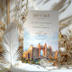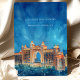 Faça a palco de uma celebração inesquecível de casamento com este cartão "Salve a Data", com uma impressionante representação aquática da icônica Atlântida de Dubai, The Palm. A frente captura o grande resort na luz da manhã suave com tons de azul pastel, bege arenoso, e coral quente, criando um senso de elegância e charme. Nas costas, a Atlântida é iluminada contra um rico céu azul da meia-noite, acrescentando um senso de mística e romance. Ideal para casais planejando um luxuoso casamento de destino em Dubai, esta carta combina arte com sofisticação, fazer que seja uma perfeita manutenção para os convidados.