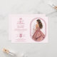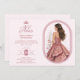 Spanish Luxurious Pink Oval Frame Charming Quinceañera Doll Illustration in Pink Shades Invitation Card.