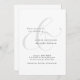 Um convite de casamento elegante e clássico em fontes de serifa preto e branco em um layout de forma livre, com um fundo de uma cinza floresce.