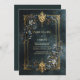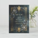 Convites Luxury Baroque Gold Frame Dark Teal Floral Wedding