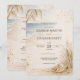 An elegant beach wedding invitation featuring soft ocean waves, palm details, and warm golden accents. Perfect for seaside, destination, or summer weddings. Designed in a classic 5×7 format with a matching front and back layout.