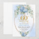 Celebrate a milestone in elegant style with this 60th birthday invitation featuring watercolor blue hydrangeas, soft eucalyptus greenery, and refined gold accents. The dusty blue floral design blends boho charm with timeless sophistication. Professionally printed with rich color and premium quality, this invitation creates a beautiful first impression for an unforgettable celebration.