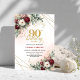 Convites Luxury Deep Red Floral Gold 90th Birthday Invite