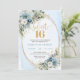 Celebrate a milestone moment with this elegant Sweet Sixteen invitation, featuring a refined watercolor design of dusty blue florals blended with soft white flowers and fresh eucalyptus greenery. Framed by a shimmering gold glitter border and paired with graceful script lettering, this invitation sets a sophisticated tone for a truly unforgettable Sweet Sixteen, Sweet 16th, or 16th birthday celebration.