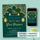 Invite your family and friends to a beautiful Iftar gathering with this luxurious emerald green invitation. Featuring a rich, intricate gold geometric pattern and glowing traditional lanterns, this design exudes elegance and spiritual warmth. The classic arch frame and hanging stars add a magical touch to your evening celebration. Perfect for formal Ramadan dinners, Eid parties, or corporate Iftar events. Customize all text to suit your specific event details.
