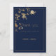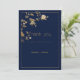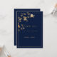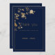 Rich navy blue paired with shimmering gold florals creates a stunning, upscale design.