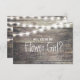 Lâmpadas de madeira e cordas, você será meu cartão de flor. Uma garota rústica com um fundo de madeira de cinza, decorada com uma corda de luzes. Cartão perfeito para o casamento com luzes noturnas, tema do celeiro, tema do jardim, casamento ao ar livre com luzes cintilantes.