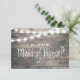 As luzes rústicas da madeira e da corda querem-no sejam meu cartão da madrinha de casamento. Uma dama de honra rústica original que caracteriza um fundo de madeira cinzento do vintage decorado com corda das luzes. O cartão perfeito para wedding com noite ilumina o tema do casamento, tema do celeiro, tema do jardim, casamento exterior com luzes da cintilação.