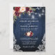Luzes de Cordas de Madeira Azul Russas com Mason Jars e Lace Watercolor Burgundy Convite Floral para Casamento inclui rosas burgundy, rosas cor-de-rosa e verde botânico.