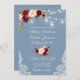 A Elegante Watercolor Burgundy Floral, as Luzes de Corda com Mason Jars e o Cartão Azul de Casamento Lace Dusty incluem rosas burgundy, rosas rosa e verde botânico.