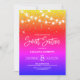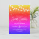 Este legal, modesto e glamouroso convite de aniversário de dezesseis anos é perfeito para a menina feminina. Ele apresenta linhas luminosas suspensas brilhantes em cima de um confete cintilante prateado imprimido em um fundo abstrato do arco-íris amarelo, laranja, vermelho, roxo e azul. É bonito, chique, moderno, moderno e legal; o design perfeito para o dia especial da sua filha. ***NOTA DE DESIGN IMPORTANTE: para qualquer solicitação de design personalizada, como solicitações de correspondência de produtos, alterações de cor, mudanças de posicionamento ou qualquer outra solicitação de alteração, envie uma mensagem ao designer. Você pode até enviar a ela um pedido de uma design completamente personalizada e nova.