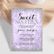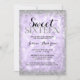 Comemore ao estilo com este doce 16 convite moderno, com luzes brilhantes lilás roxas nos fundos com uma falso borda cintilante prateada. Os designs são ilustrações/gráficos impressos planos - NÃO É REAL SILVER GLITTER.