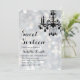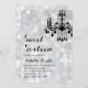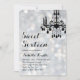 Um candelabro rico num pano de fundo de luz prateada acentua este convite de aniversário.