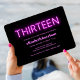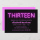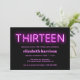 convite de aniversário moderno legal com "treze" em luzes néon cor-de-rosa-quente contra um fundo preto.