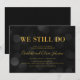 Convite de aniversário de casamento sofisticado com as palavras "We still do" em folha de ouro falso sobre um fundo de padrão de luzes bokeh escuras na parte frontal e um fundo de cor escura no verso. Este convite é perfeito para celebrar um aniversário de casamento de qualquer ano, bastando adicionar o número de anos que está sendo celebrado no texto do espaço reservado.