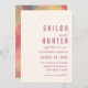 Este moderno convite de casamento estilizado apresenta um estilo simples na frente, em roxo e creme de lavanda, com luzes colorido de um pinto de barro na parte de trás. Cores incluídas nas luzes do compartimento design - cor-de-rosa, ouro amarelo, pêssego, laranja, lavanda roxo e verde. Único e sonhador - perfeito para o seu dia especial!