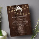 Churrasco do estilo russo country para o aquecimento doméstico / na moda de festa modelo de convite para em madeira marrom-escura com buquê de flores brancas e cordas de luzes cintilantes. Preencha suas informações nos pontos, Você pode optar por personalizá-las mudando ainda mais as fontes e as cores das letras. — O convite é adequado para festas de hortas/quintais rústicos de casas. — Se precisar de assistência, por favor, entre em contato comigo!