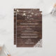 Menu de recepção de casamento com madeira, renda e luzes de corda. Celebre seu casamento na recepção com estilo e charme com este menu de madeira falsa. Personalize com as opções do seu prato principal.