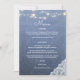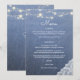 Luzes de corda com renda e jeans azul, menu de recepção de casamento. Celebre seu casamento na recepção com estilo e graça com este menu de jeans falso. Personalize com as opções do seu prato principal.