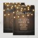 Convites de Festa de Aniversário com Luzes de Corda de Barril de Madeira Rústica.