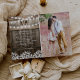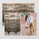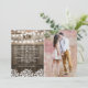 Convites de casamento com foto country apresentando um fundo rústico de barril de madeira, uma foto dos noivos, luzes cintilantes, um design floral de baby's breath, seu monograma e um modelo de casamento elegante e editável.