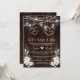 Design único com tipografia "Eu Dou, Eu Também" dentro de dois corações, luzes de corda de potes de pedreiro, orquídeas roxas de aquarela, grama de pampas seca, folhas de palmeira, lunária, em um celeiro antigo. Use a ferramenta Personalizar para adicionar suas informações. Visite, por favor, minha Coleção de Flores Únicas.