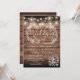 Um convite de casamento rústico com lindas luzes de corda, jarros de pedra e uma delicada grinalda floral rústica desenhada à mão com folhagem de folhas botânicas e tipografia de letra estilosa, em um fundo de madeira rústica. Personalize com as informações do seu dia especial de casamento. Criado por Thisisnotme©