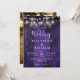 Este convite de casamento com luzes de corda de madeira de celeiro rústico roxo pode ser personalizado com suas informações em tipografia moderna e uma foto especial no verso. Projetado por Thisisnotme©