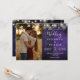Este convite de casamento com luzes de corda de madeira de celeiro rústico roxo pode ser personalizado com suas informações em tipografia moderna e uma foto especial. Criado por Thisisnotme©