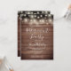 Com luzes de corda em um fundo de painéis de madeira rústica, este convite de festa de aposentadoria elegante pode ser personalizado com as informações do seu evento especial. Criado por Thisisnotme©