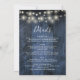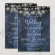 Este convite de casamento com luzes de corda de madeira rústica azul tudo-em-um pode ser personalizado com suas informações em tipografia moderna e detalhes do casamento no verso. Projetado por Thisisnotme