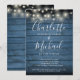 Convites Luzes de Corda de Madeira Rústica Azul Script Noiv