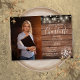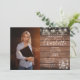 Um convite de festa de formatura rústico elegante com lindas luzes de corda, potes de conserva, nomes de estilo de assinatura e tipografia chic em um fundo de madeira rústica azul, personalizado com a foto do seu graduado e detalhes da celebração. Projetado por Thisisnotme©