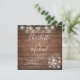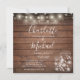 Com luzes de corda bonitas, jarros de pedra e nomes elegantes em estilo de assinatura em um fundo de madeira rústica, juntamente com a foto escolhida no verso, este convite de casamento elegante pode ser personalizado com os detalhes da celebração do seu casamento. Concebido por Thisisnotme©