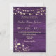 Embarque em sua jornada de amor com nosso requintado convite de casamento em madeira rústica roxa. Este design moderno e elegante apresenta um cativante código QR para RSVP conveniente, juntamente com um link para o site do seu casamento. Aumentado com um toque de renda floral em dourado boho e luzes de corda delicadas, este convite prepara o cenário para uma celebração repleta de romance e charme. Capture a essência do seu dia especial com este conjunto de convites sofisticado e atemporal.