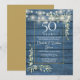 Com luzes de corda bonitas e verdejante jardim country de aquarela delicada em um fundo de madeira rústica azul, este convite de aniversário elegante pode ser personalizado com as informações da sua celebração especial de 50 anos de aniversário, com um fundo dourado no verso. Projetado por Thisisnotme©