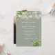 Esta elegante convite de casamento de luzes de corda de folhagem de eucalipto botânico verde sage pode ser personalizado com suas informações em tipografia chic com sua foto especial no verso. Projetado por Thisisnotme©
