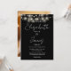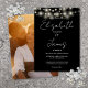 Este convite de casamento com luzes de corda preto e branco e letreiro elegante pode ser personalizado com suas informações em tipografia chic e foto especial no verso. Criado por Thisisnotme©