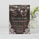 Design único com tipografia "EU FAÇO, EU TAMBÉM" dentro de dois corações, luzes de corda com potes de pedreiro, renda vintage, em um celeiro antigo. Use a ferramenta Personalizar para adicionar suas informações. Visite, por favor, minha Coleção de CHURRASCO para TODOS OS EVENTOS Rustic Country.