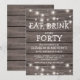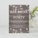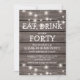 Convites de aniversário de quadragésimo aniversário com fundo de madeira rústica, luzes cintilantes de corda e um modelo de texto de aniversário. A idade de aniversário neste convite também pode ser alterada para 18º, 21º, 30º, 50º, 60º, etc.