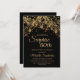 convite de aniversário de 80 para mulheres com luzes de cordas de ouro brilhantes e espumantes sobre fundo negro ousado. Como o texto é personalizável, este convite é feito para uma senhora que comemora qualquer aniversário. (18, 21, rua, 30, 40, 50, 60, 70, 80, 90, 100...ou qualquer idade). Texto, fontes e texto são completamente personalizáveis. Entre em contato conosco para obter ajuda sobre a personalização ou produtos correspondentes.