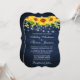Rustic Blue Wood String Luzes Watercolor Floral e Verde Convite para Casamento de Girassol