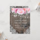 O convite para casamento vintage russo apresenta flores cor-de-água, cor-de-rosa e pinceladas, luzes de cordas, rendas e madeira de celeiro