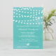 Convite divertido e caprichoso com luzes de cordas brancas em um fundo de aquarela rústica. Outras cores estão disponíveis.