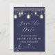 Convites Luzes de fada salvam a data, casamento azul-marinh