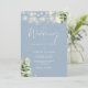 Esta elegante convite de casamento com luzes de corda florais de greenery azul empoeirado pode ser personalizado com suas informações em tipografia chic com sua foto especial, detalhes do site de casamento e seu código QR no verso. Projetado por Thisisnotme©